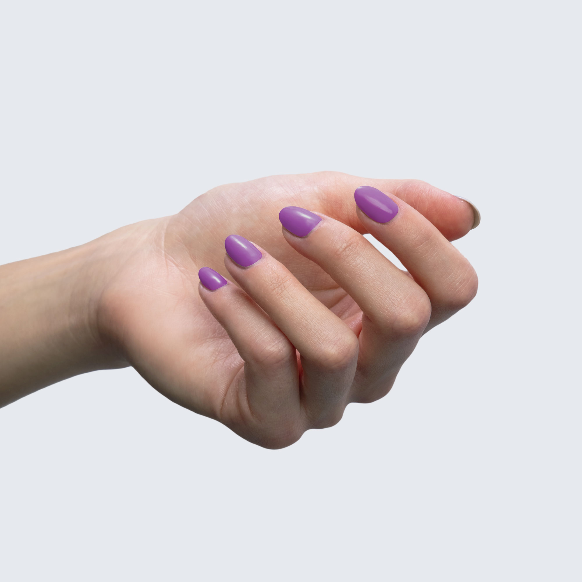 Neon purple. Light. Opaque. Cool undertone. Semi-gloss.